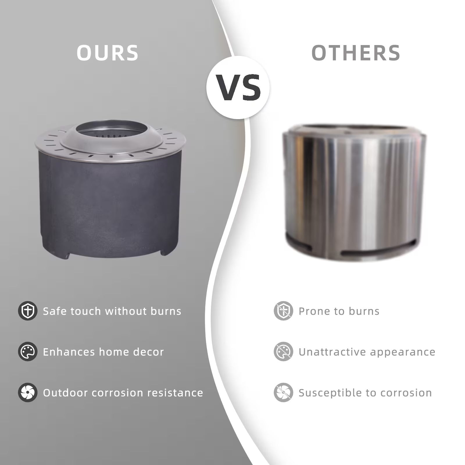 Wrapped in a faux concrete texture and compact enough for the coziest patios, it blends effortlessly into any aesthetic—from rooftop garden lounges to modern zen courtyards. With clean-burning efficiency and zero smoke, it delivers the ambiance you crave without compromise.
