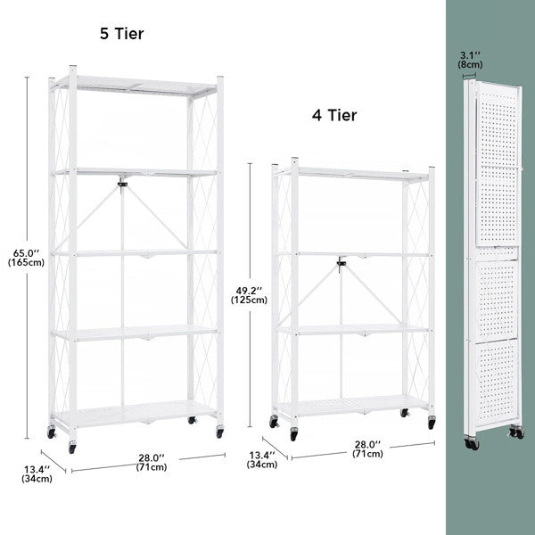 Viva Essentials Collection: 5-Layer White Foldable Metal Storage Rack
