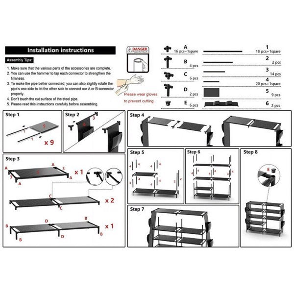 Materials: Powder-coated steel frame + non-woven fabric shelves