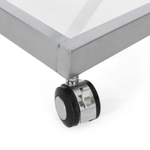 Glide smoothly on industrial-grade wheels, then lock securely in place—your mobile beverage cart solution. -