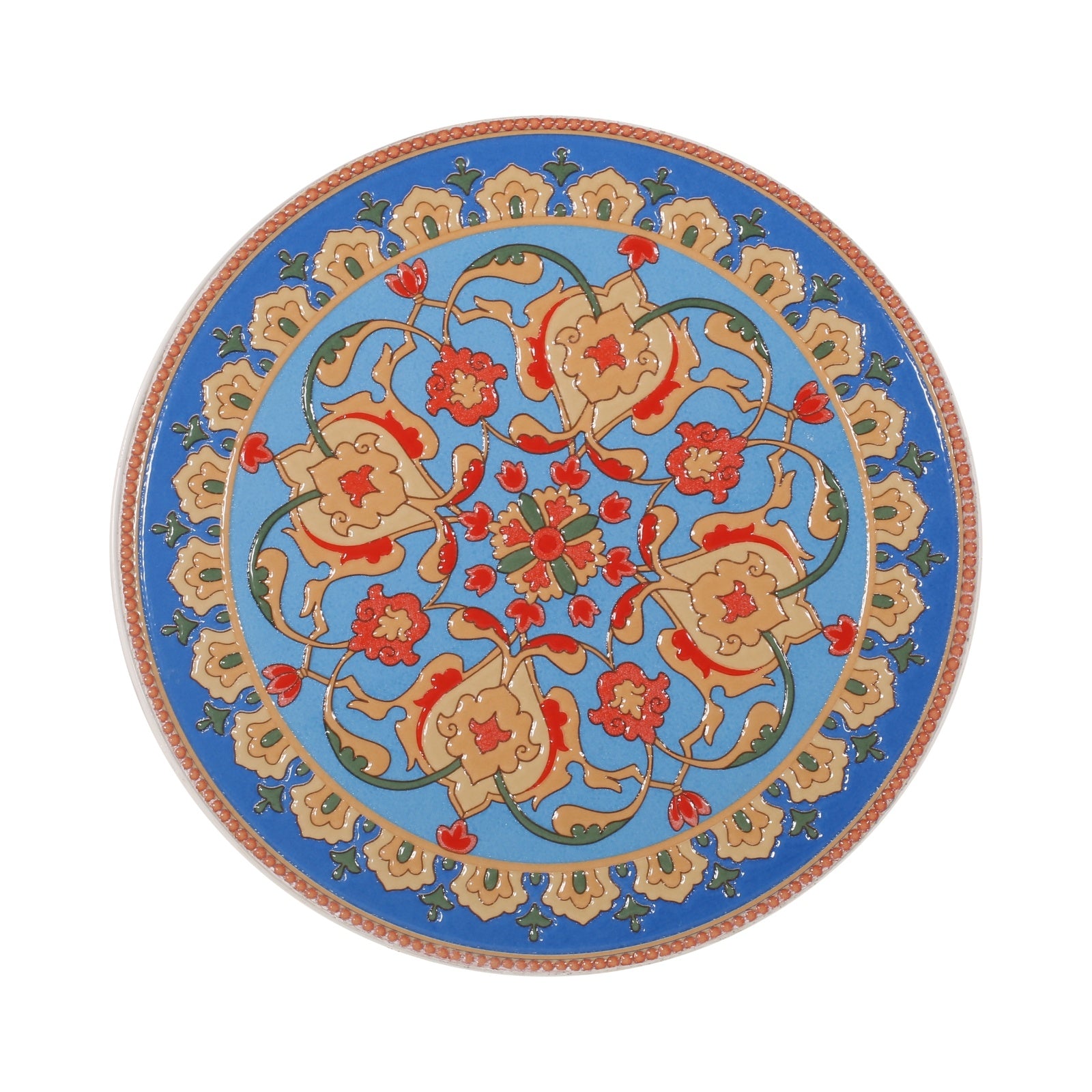Nestle beside an upholstered lounge chair: rest your latest novel and a porcelain mug, as the table’s pattern draws eyes and soothes the mind. -