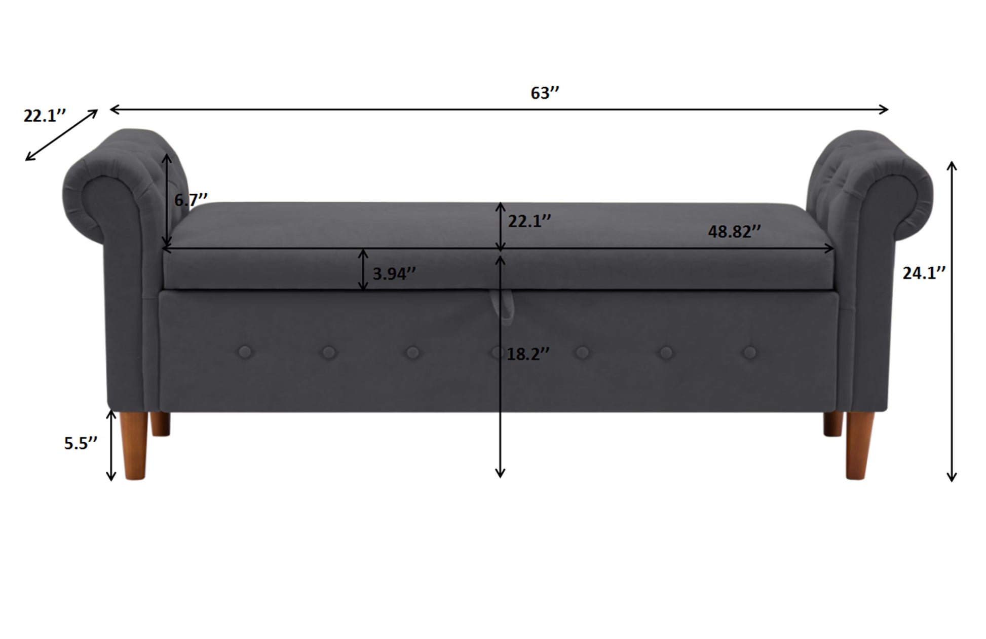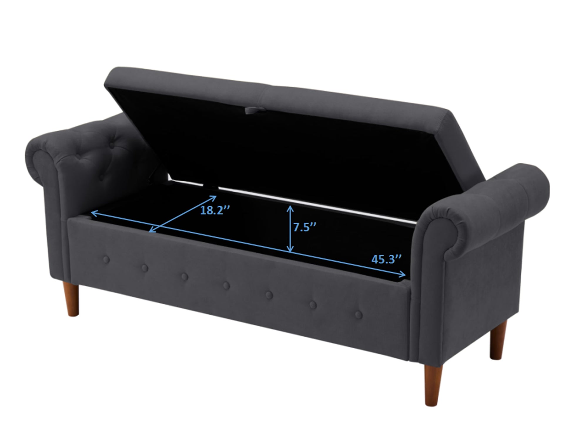 - - Material: Premium dark gray upholstery with storage mechanism