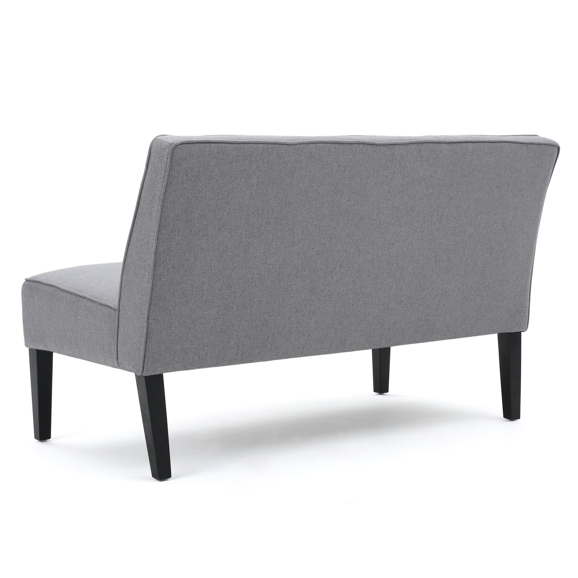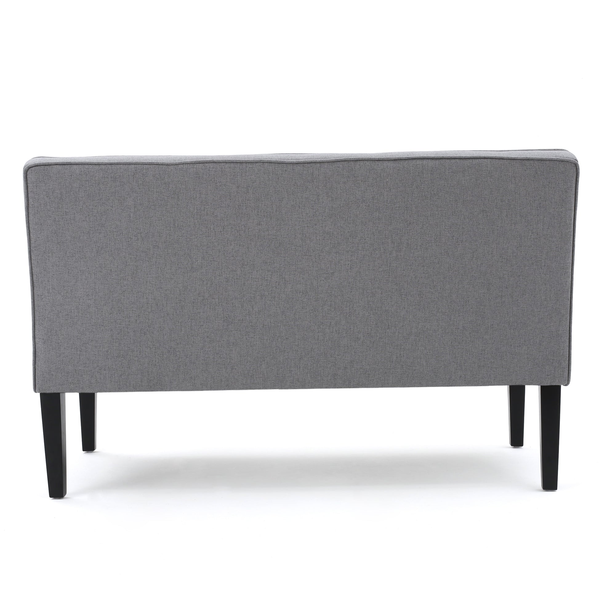 Plush seat and back cushions wrapped in a feather-like layer deliver cloud-like support that springs back with daily use. (sub keyword: mid-century modern grey fabric loveseat) -