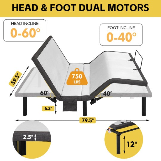 Adjust your bed effortlessly with the included wireless remote, featuring preset positions and customizable settings for the perfect sleep experience.