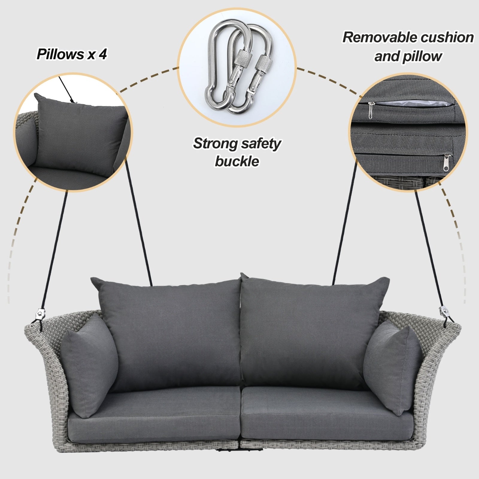 🎨 Elegant Gray & Black Palette (gray rattan porch swing for two)