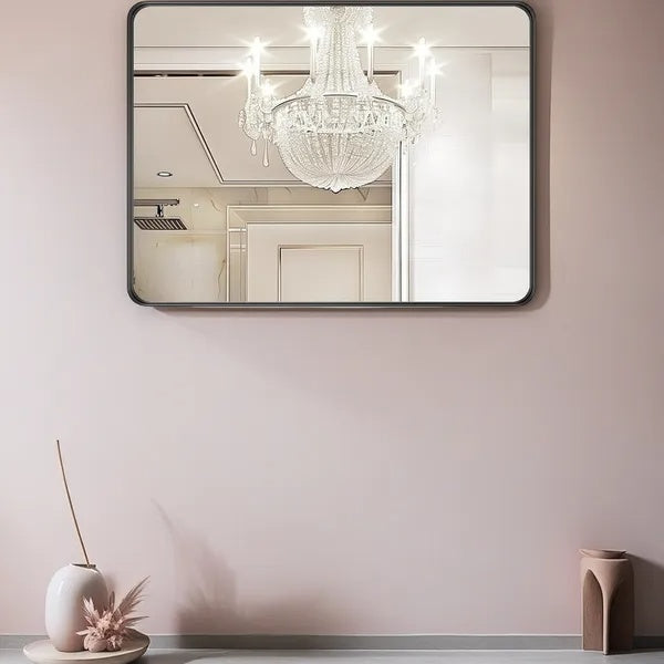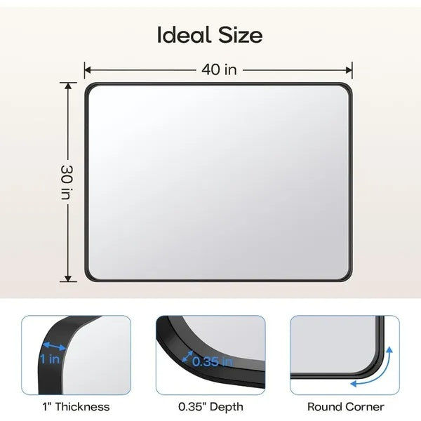 Brand/Product Name Black Large Bathroom Mirror, 40 × 30 Inch Rectangle Mirror for Bedroom, Bathroom, Dining Room, Entryway, Wall Mounted & Metal Frame, Tempered Glass, Hangs