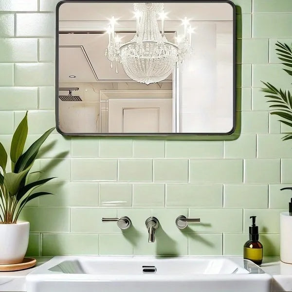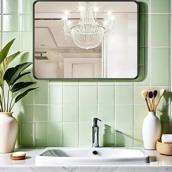 Large 40-inch X 30-inch Black Bathroom Mirror Is Stylishly Simple And Atmospheric