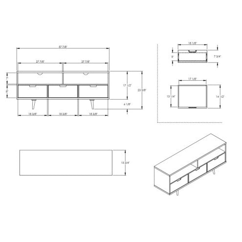 Drawer Size (each) | 22″ W × 12″ D × 5″ H (56 × 30 × 13 cm); 3 total |
