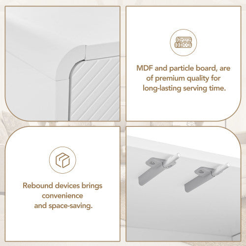 Integrated rebound mechanisms eliminate the need for external handles. A gentle push on each door’s center releases silent, space-saving access—catering to “push-to-open minimalist sideboard” preferences. -