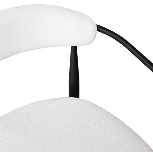 Ivory upholstery and matte-black legs harmonize with Scandinavian minimalism, industrial lofts, or transitional décor—catering to “modern boucle bar stools for kitchen” trends.