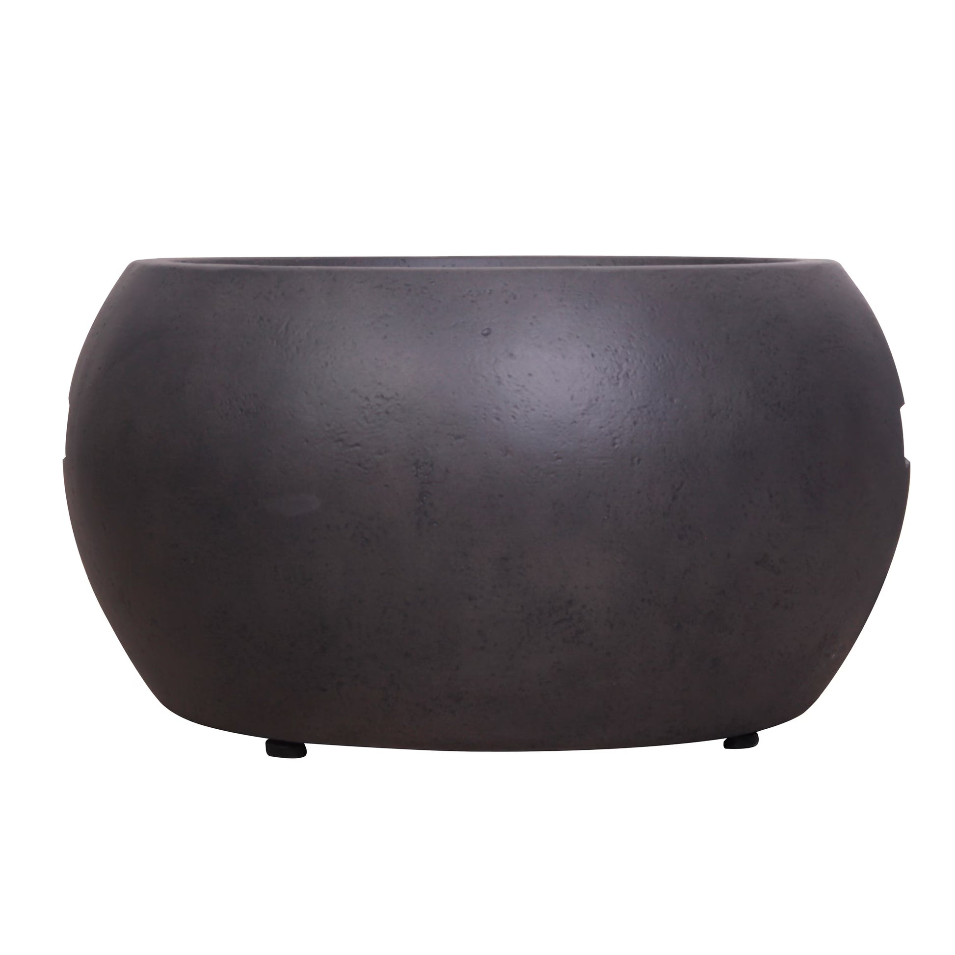 This gas fire pit is made of TerraFab (eco-friendly composite material) in dark rough concrete effect.