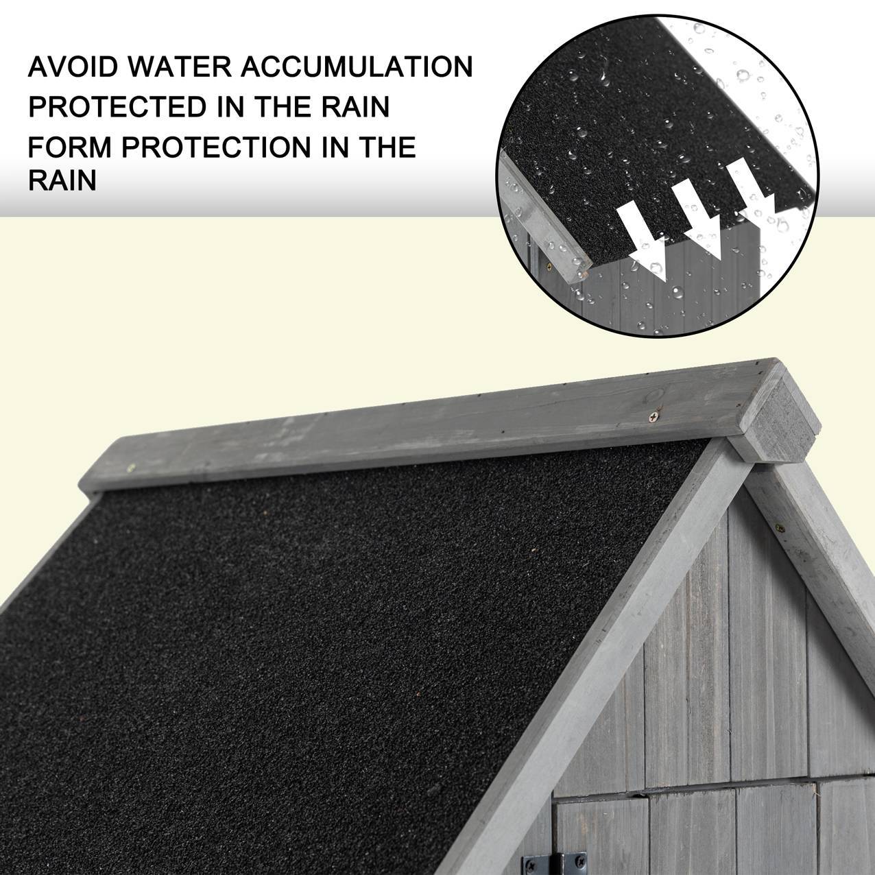 [Solid Fir Wood Frame]Made of 100% solid fir wood, this storage shed is sturdy and durable. The whole frame is weather resistant and can withstand the test of being outdoors for years. The door is reinforced by extra wood board to enhance the durability.