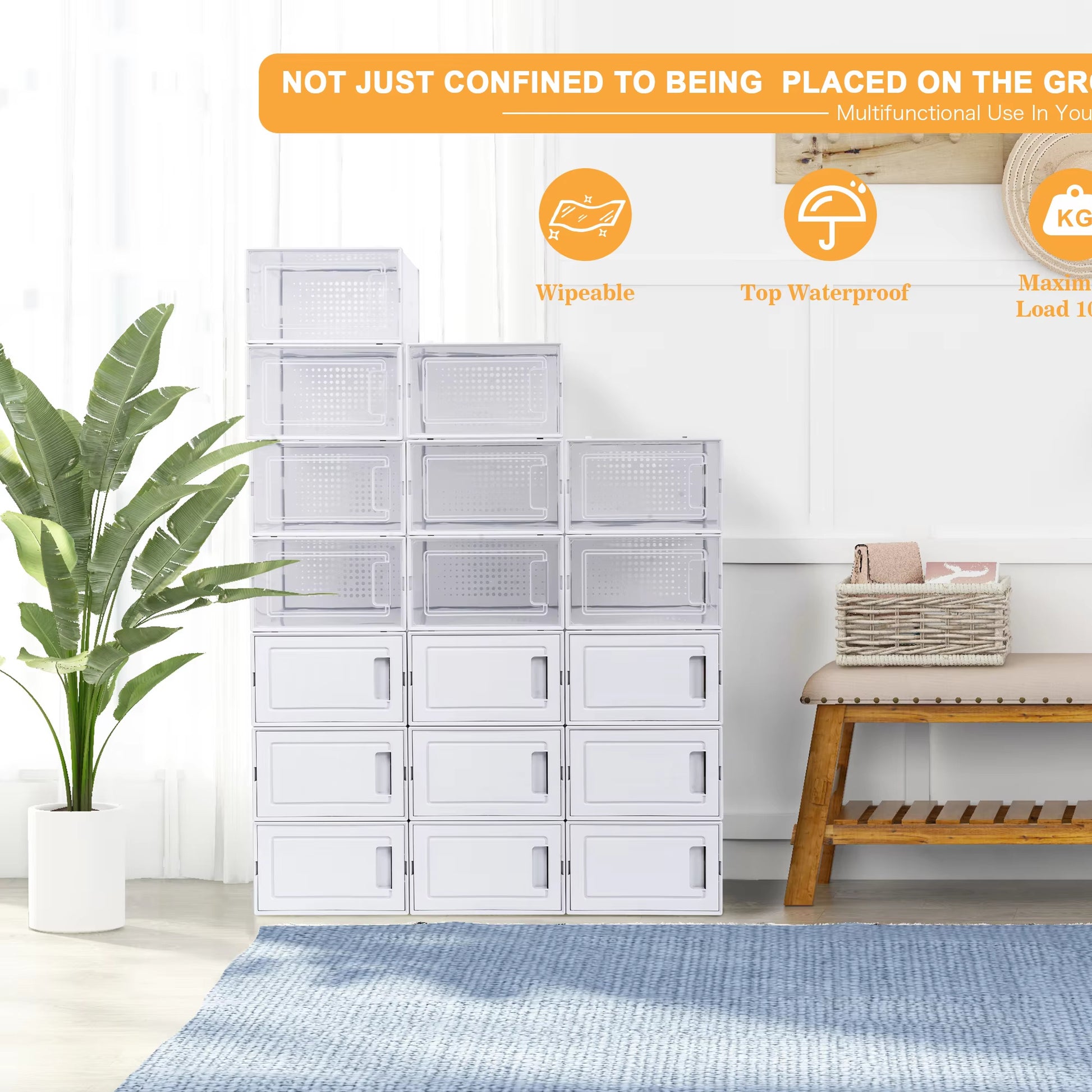 Material :PP shoe storage boxes+ABS door frame