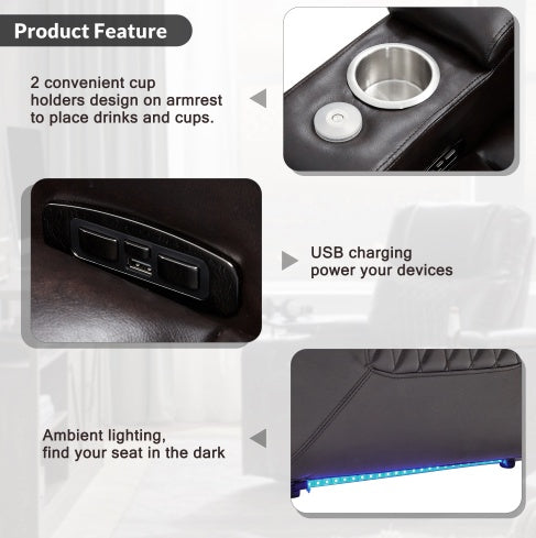 With its sleek and contemporary look, the Power Motion Recliner seamlessly blends into any modern living room or home theater setup. The brown PU leather upholstery exudes a rich, sophisticated vibe that complements a wide range of interior design styles, from minimalist to industrial. Whether you're outfitting a cozy home office, creating the perfect living room seating, or adding a touch of luxury to your home theater, this recliner will elevate your space.