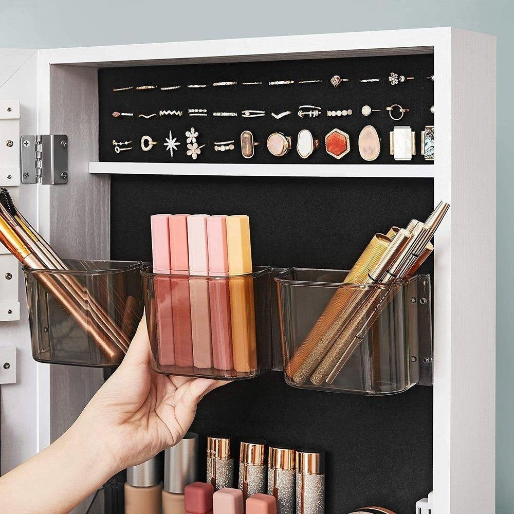 - Storage Features: Necklace hooks, earring racks, ring slots, bracelet bars, and small drawers