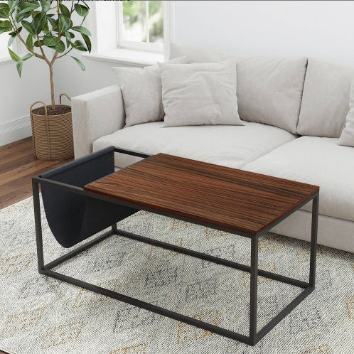 - - Finish: Walnut treatment with industrial metal frame design