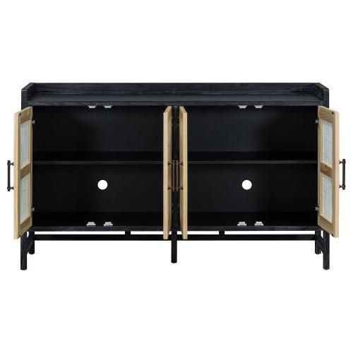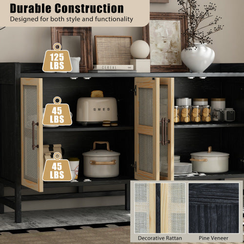 Product Name:TREXM Rustic Sideboard with Decorative Rattan Doors and Adjustable Shelves for Entryway, Dining Room, or Living Room (Black+Natural)