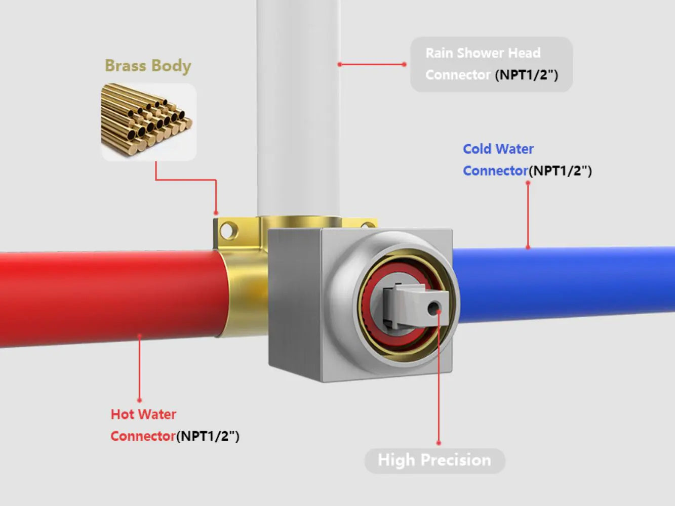 Included Components Cold and hot control handle, 8 inch square shower nozzle, shower bracket, 15 inch shower arm