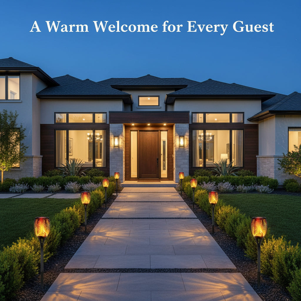 ✔ Curb Appeal: Flickering torches create resort-style welcome for visitors