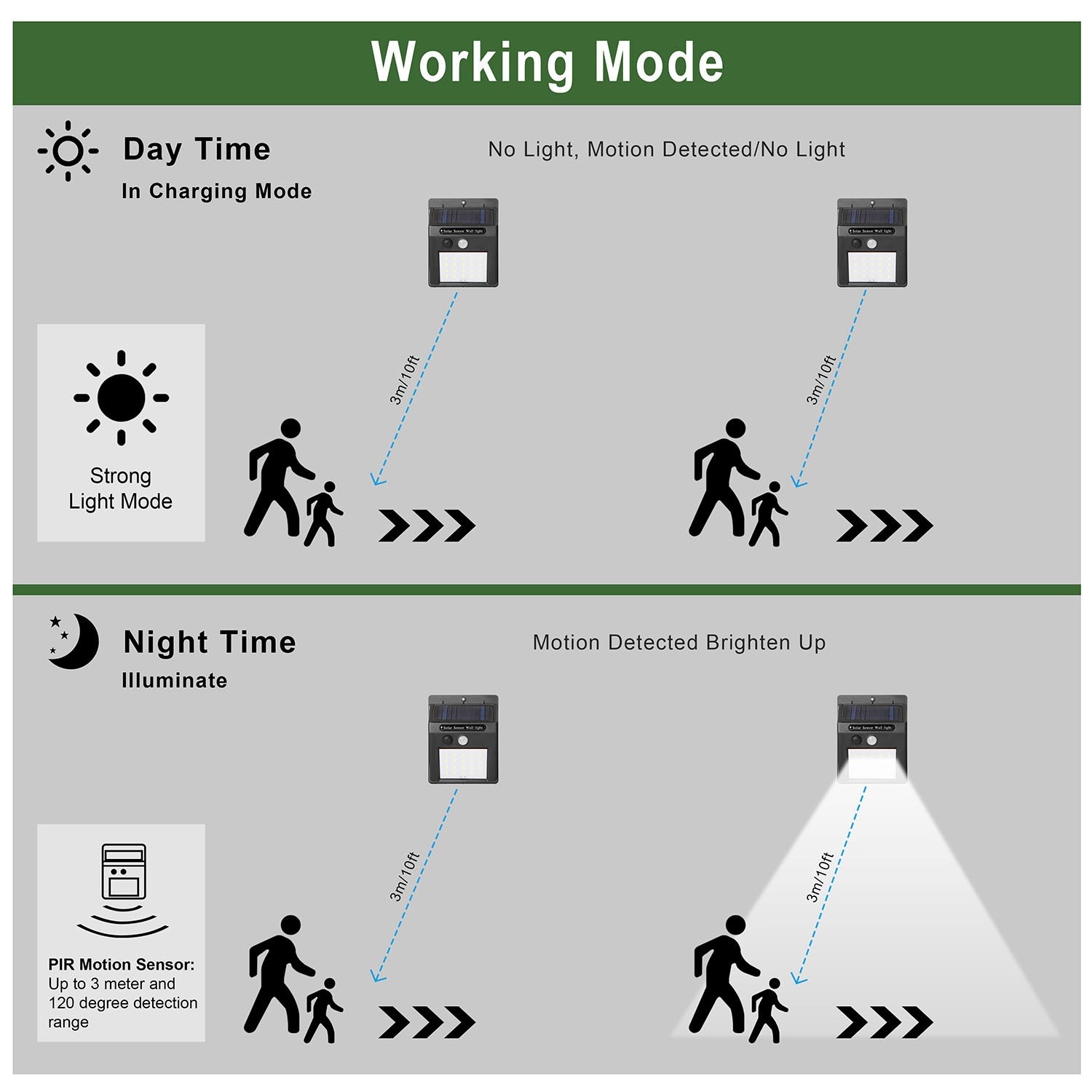 ✔ PIR motion detection: Intelligent sensor activates light only when movement is detected within range✔ 20 bright LEDs: Powerful illumination provides clear visibility and effective deterrent