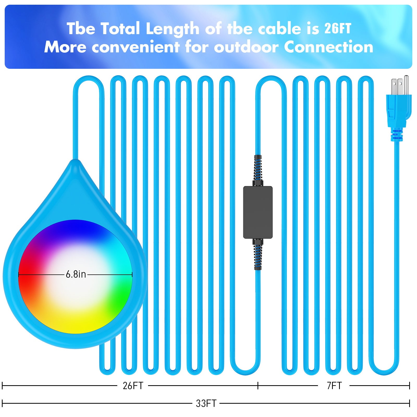 SPL-FLL00X 6-inch 12V 20W Blue Droplet Shaped RGB Pool Light 26FT