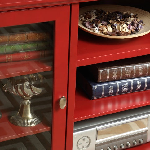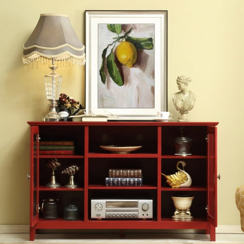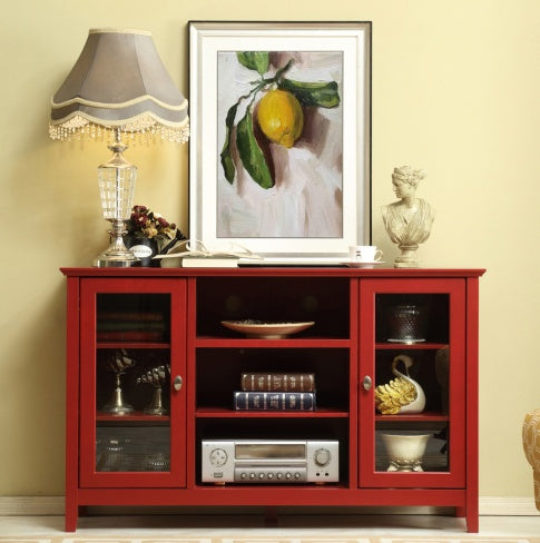Storage Buffet Cabinet Sideboard TV Console With Glass Doors,Red