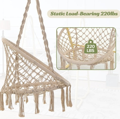 Luxurious Macrame Swing Chair with Stand – Perfect for Relaxing Indoors & Outdoors