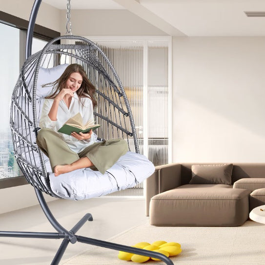 Product Name: Swing Egg Chair with Stand Indoor Outdoor Wicker Rattan Patio Basket Hanging Chair with C Type bracket , with cushion and pillow,Patio Wicker folding Hanging Chair( Special construction cup holder