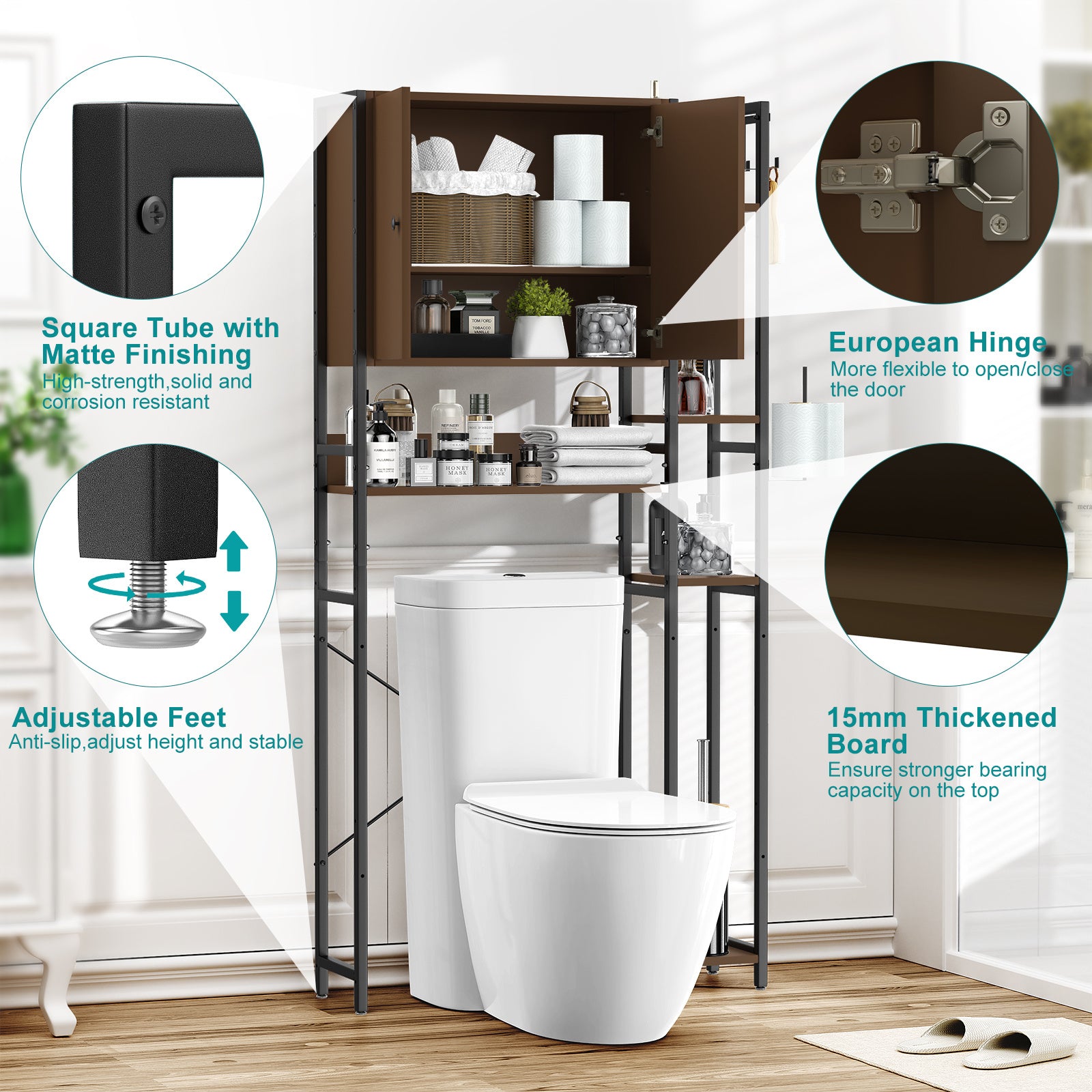 ✔ Maximize Vertical Storage: This multi-functional toilet storage cabinet with adjustable shelves makes use of wasted space above your toilet, providing ample room for towels, toiletries, and other essentials.