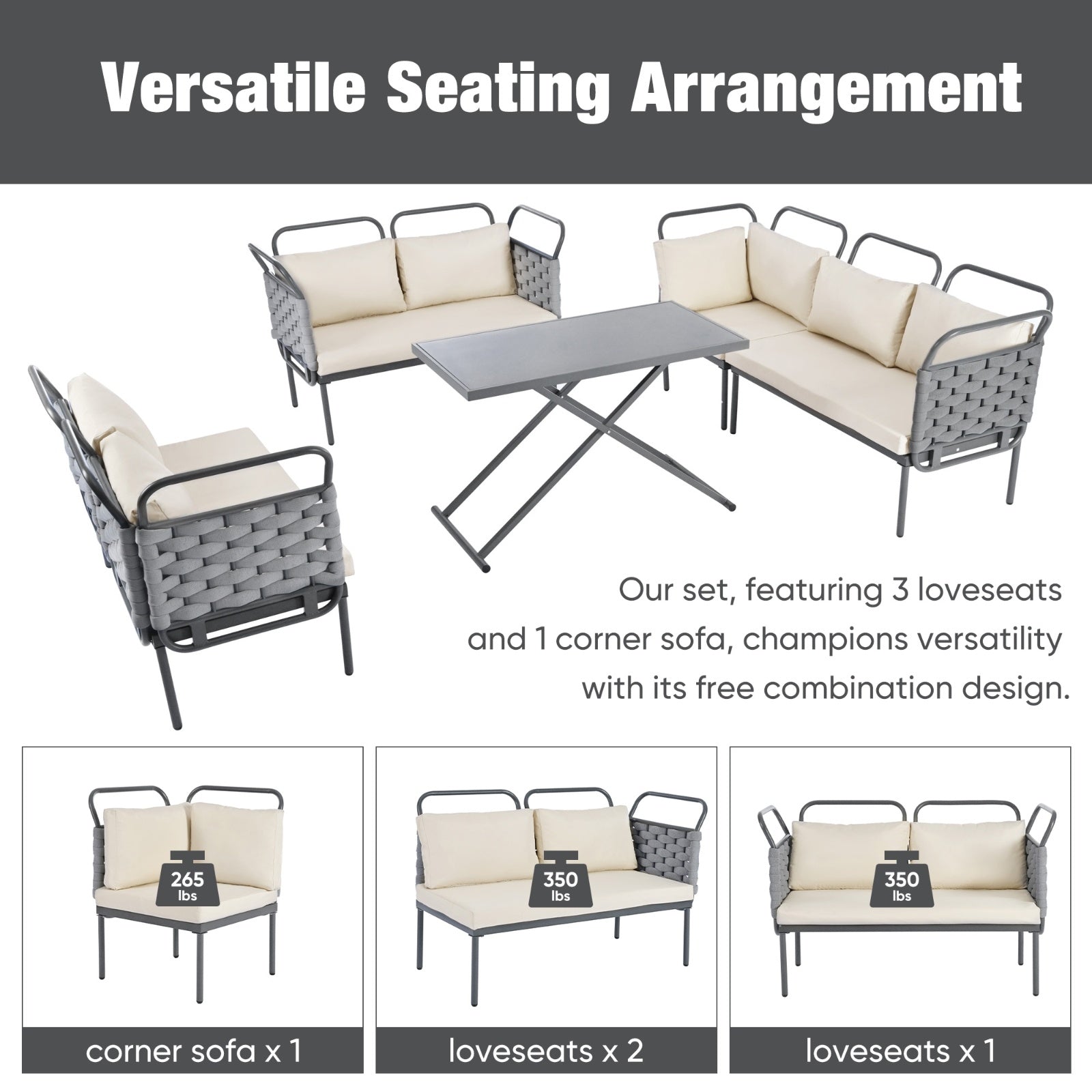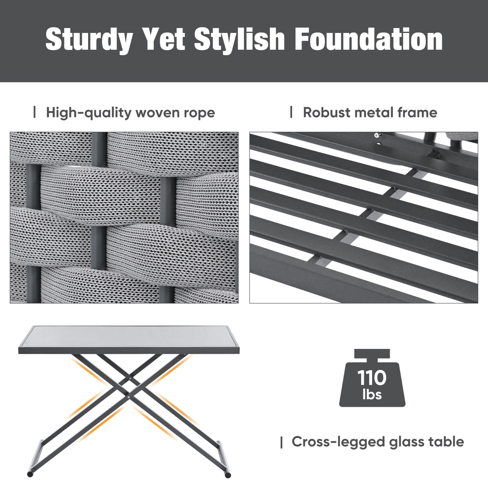 TOPMAX 5-Piece Modern Patio Sectional Sofa Set Outdoor Woven Rope Furniture Set With Glass Table And