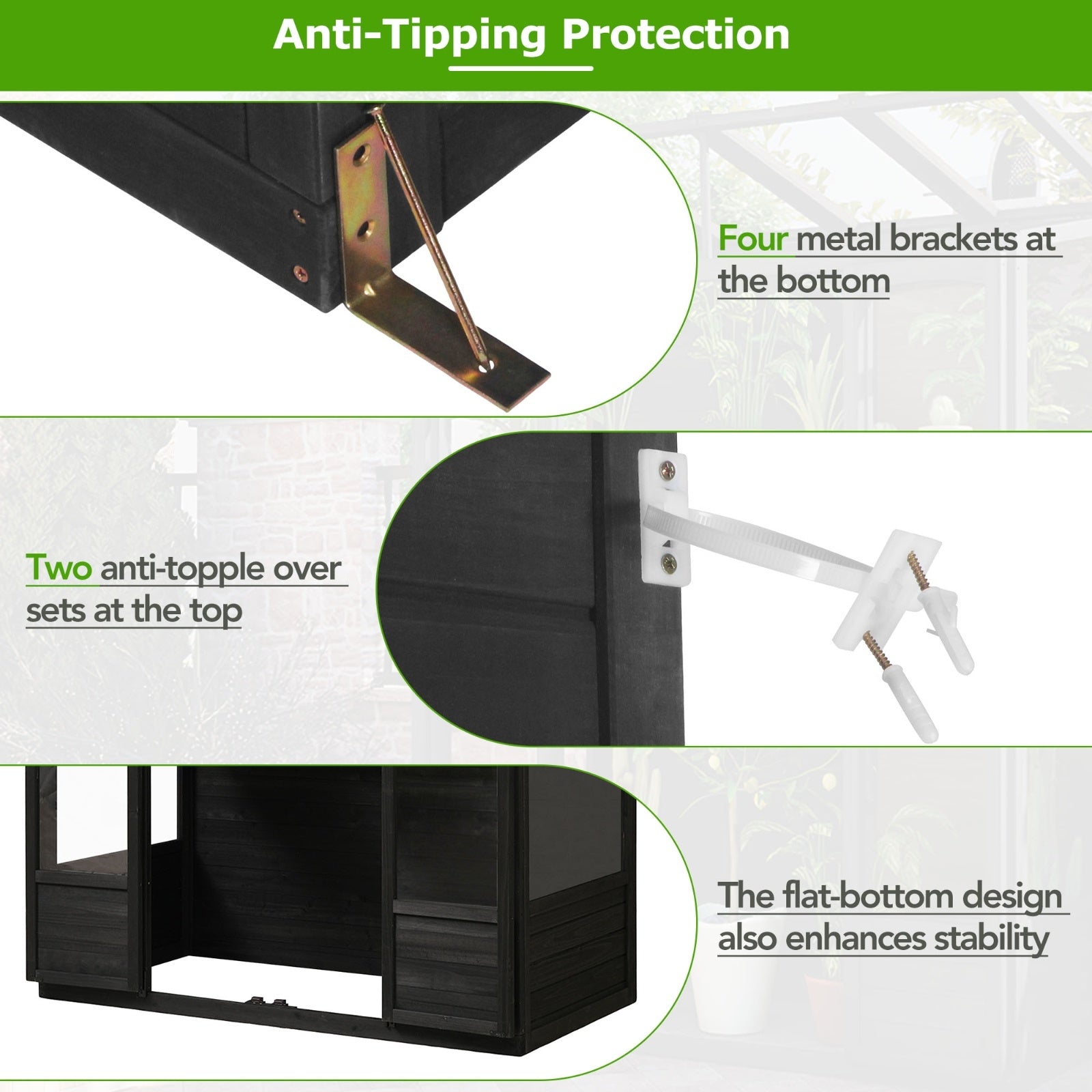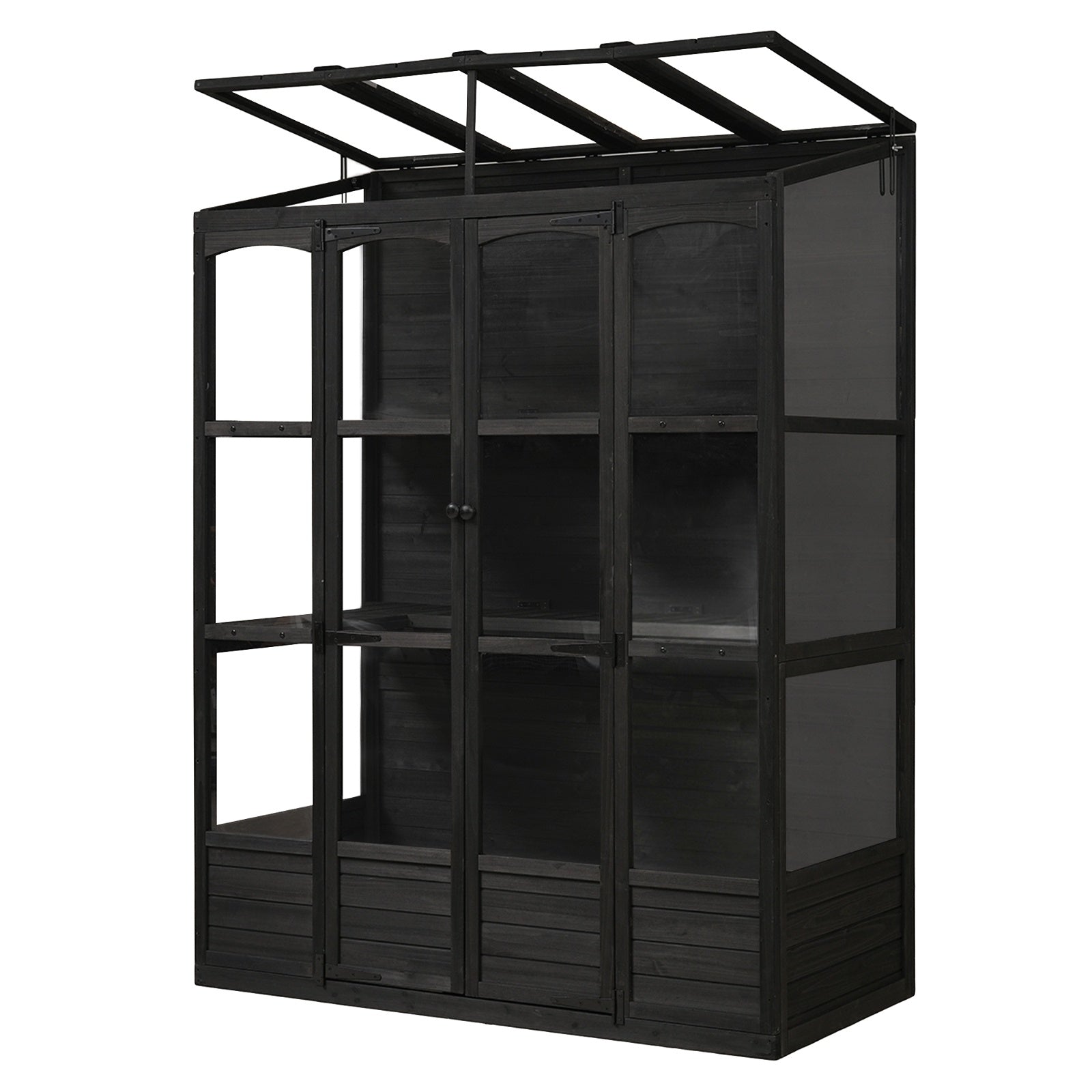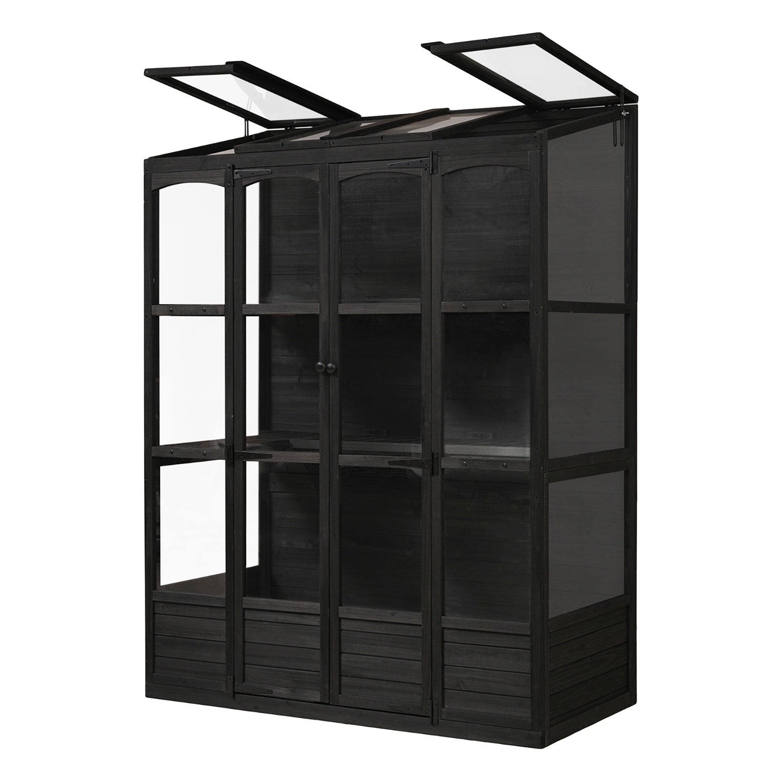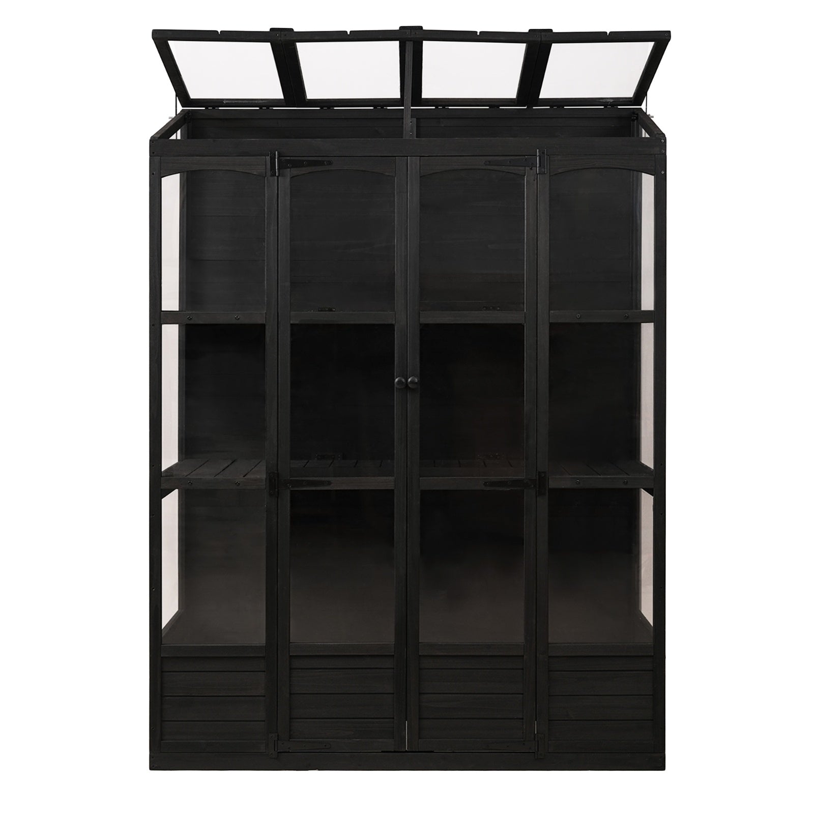 TOPMAX 78-inch Wooden Greenhouse Cold Frame With 4 Independent Skylights And 2 Folding Middle Shelve