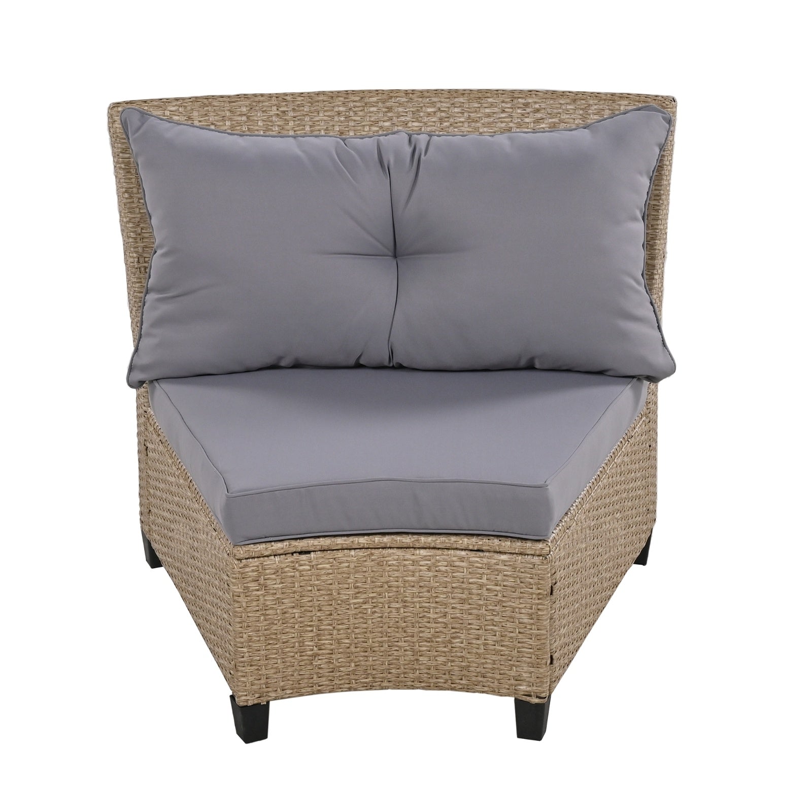 [VIDEO provided] U_Style 6 - Person Fan-shaped Rattan Suit Combination with Cushions and Table,Suitable for Garden