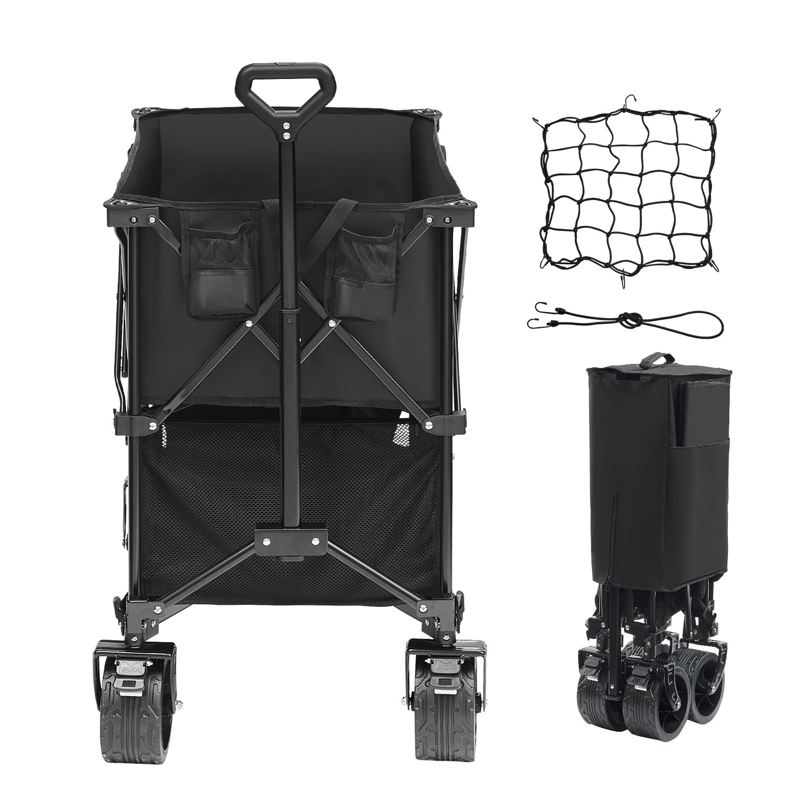 VEVOR Foldable Double Decker Wagon, 400L Collapsible Wagon Cart With All-Terrain Wheels, Heavy Duty Folding Wagon Cart 450 Lbs Weight Capacity For Camping, Shopping, Garden,