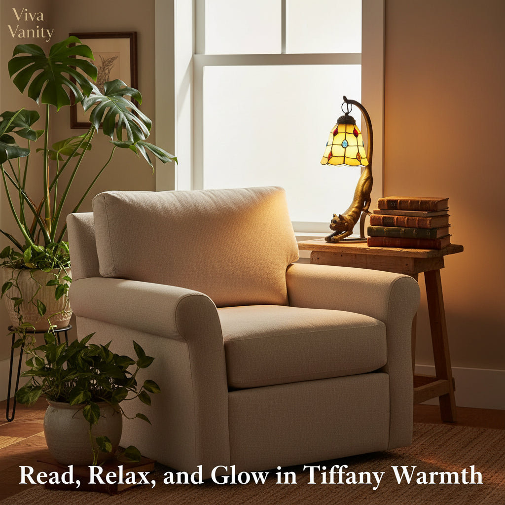 Imagine a sanctuary where light blooms through hand-cut art glass, where a sculptural cat silhouette becomes a conversation piece, and where every evening transforms into a moment of enchanting beauty. The Viva Elite Artisan Cat Table Lamp transcends conventional lighting—it's a thoughtfully curated fusion of Tiffany-style stained glass craftsmanship and playful feline design that transforms how you experience ambient illumination in your most cherished spaces.