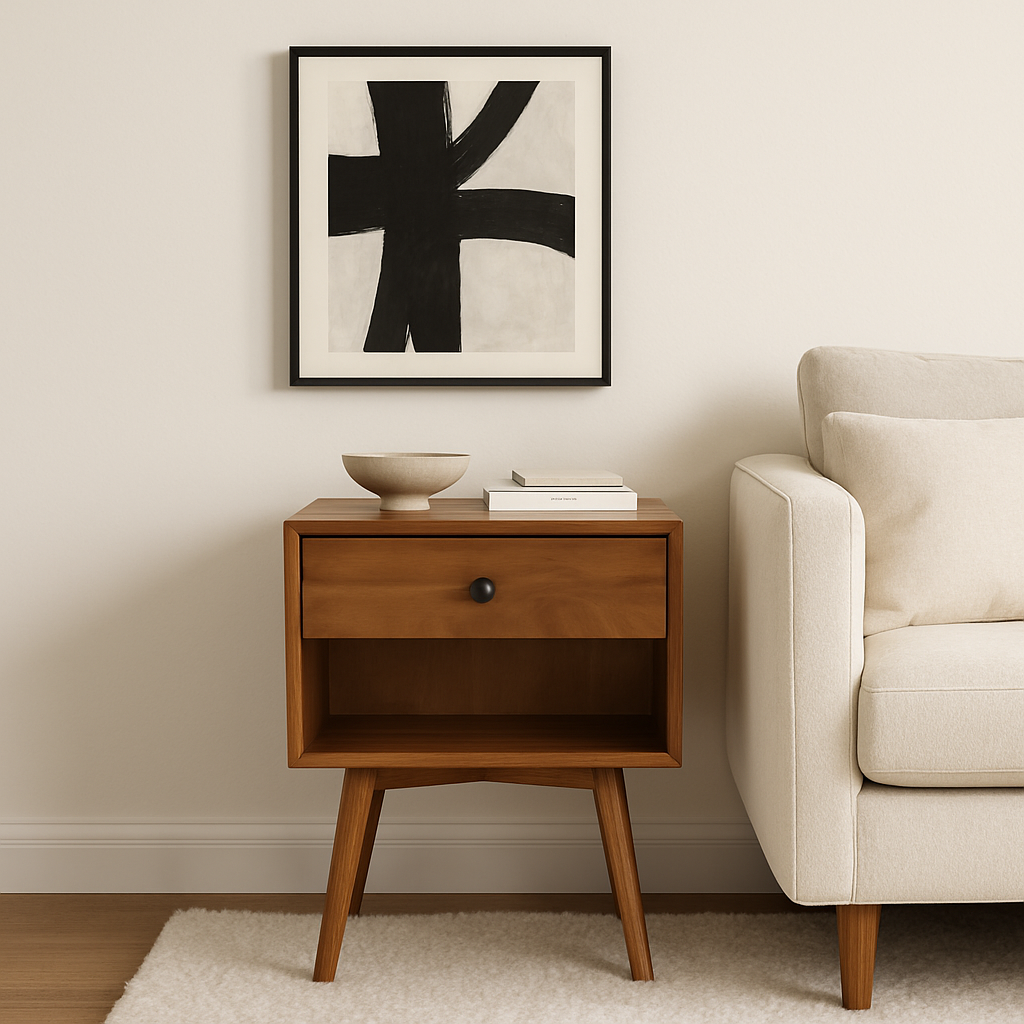 ✔ Single drawer design that exemplifies mid-century minimalism and functional sophistication