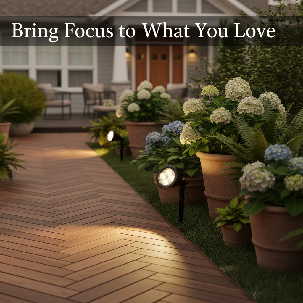 Transform garden sculptures and art into nighttime focal points with focused spotlight illumination.