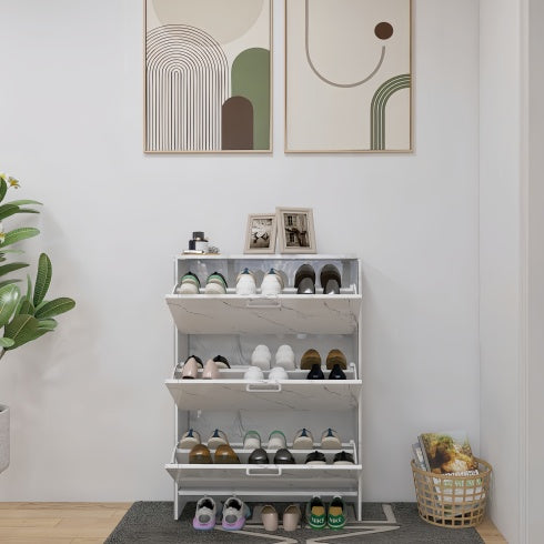 Reimagine your entryway with seamless sophistication—click “Add to Cart” now to welcome the Viva Aria High-Gloss White Marble 3-Door Shoe Cabinet into your home and step into organized luxury.