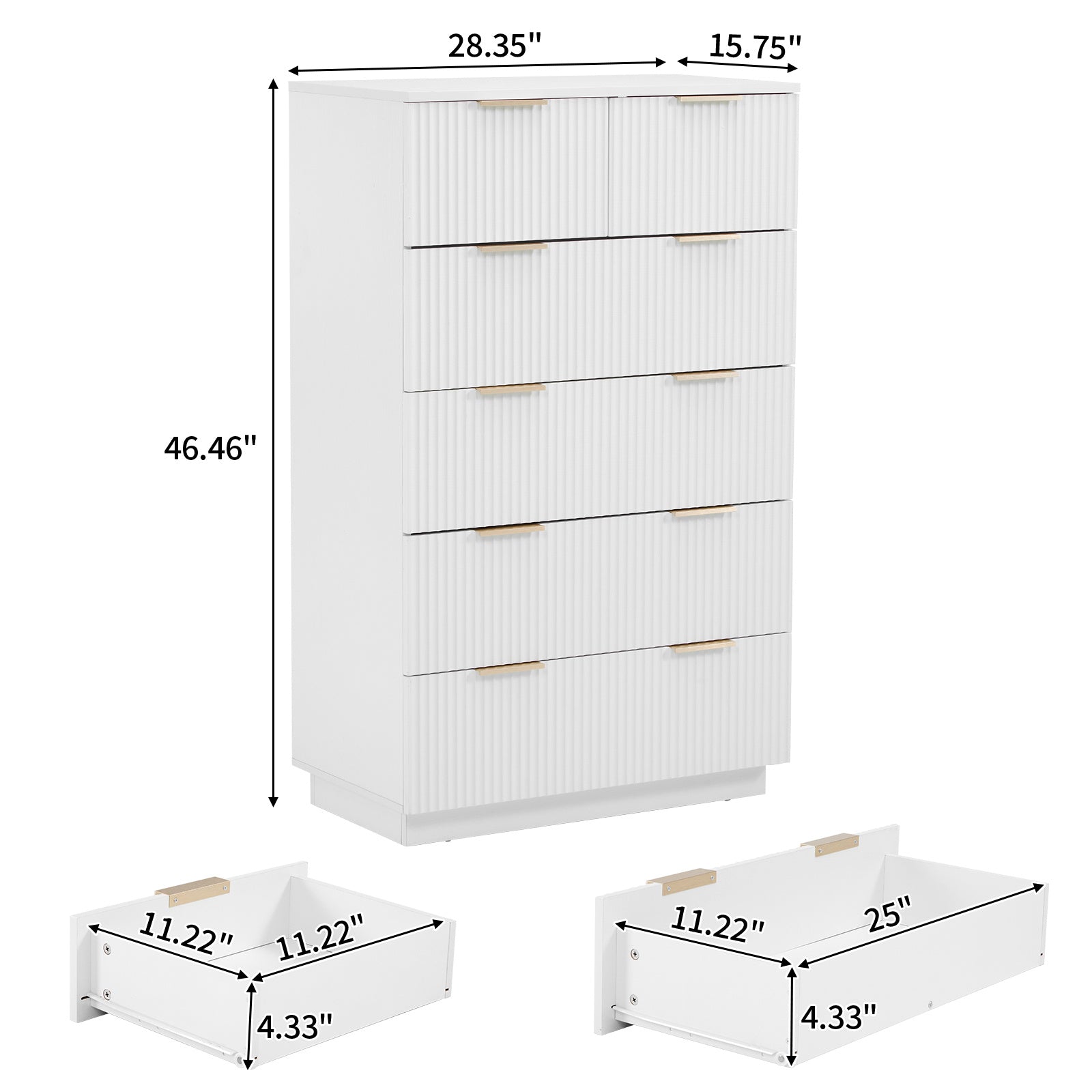 White P2 Density Board, Corrugated Surface, Five Layers And Six Drawers, Chest Of Drawers